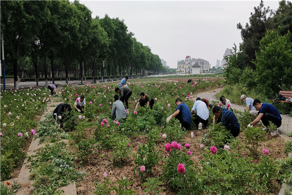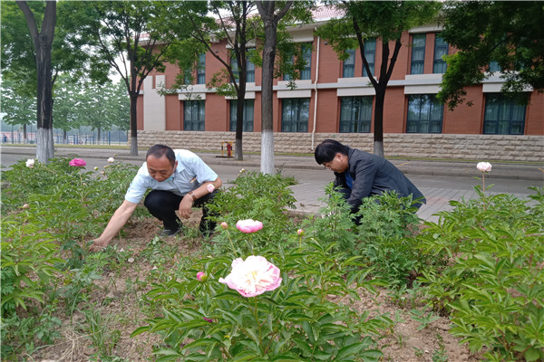 主题党日活动,组织全体党员清理拔除南校区花草圃芍药园的杂物杂草。
