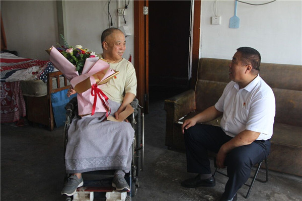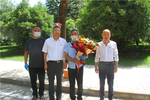 6月30日,在中国共产党建党99周年来临之际,后勤处处领导赴南北校区后勤服务保障工作一线走访慰问困难党员和老党员,为他们送去了鲜花和慰问金,并送上组织的关怀,致以节日的问候。