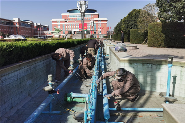 3月18日下午,维修中心党支部结合工作实际,立足职能职责,在南校交流中心广场开展“喷泉设施美化维护”主题党日活动。支部全体党员及部分职工参加活动。