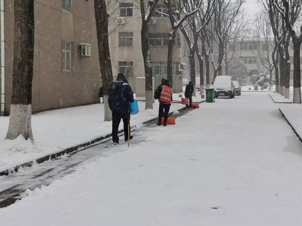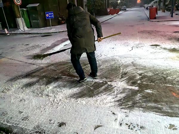 2月23日早上,天还没亮,物业管理中心全体职工迅速行动,清扫路面积雪,保障住户安全出行。由于此前受到强冷空气的影响,积雪落到地面上之后不会在短时间内融化,这也给扫雪除冰工作带来了不小的难度。