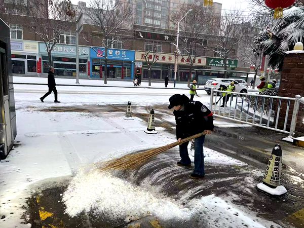 此次扫雪采用机械人工扫雪相结合、科学使用融雪剂的原则展开,重点做好主出入口、坡道等易滑路面的扫雪铲冰工作,随后又开始清理每栋楼门口的积雪,等到住户出行的时候,已经有了一条条小路通往干净的主路。