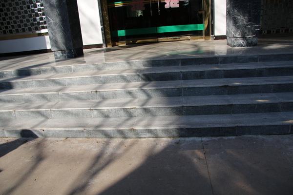 工程内容:将室外台阶饰面材料改造为机刨石等。