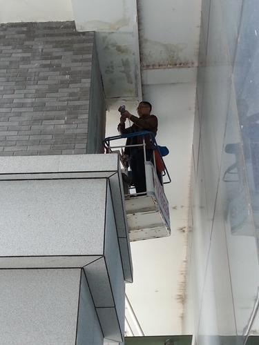 因楼层较高,给检查带来诸多不便,为保证维修工人的安全,中心借来升降车,借助升降车,掀开2层雨檐下石膏板进行仔细检查。经检查,3层实验室下水管道损坏、漏水导致2层石膏板发黄、变形。该处下水管道是直径为75㎜PVC管道,且管道上有一个直径约为20㎜的洞口。