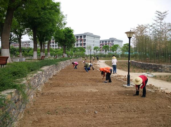 北绣南广场读书平台是我校师生重要的科教休闲场所,为进一步美化该区域环境,提升景观效果,绿化中心于近日在该区域进行花卉播种。