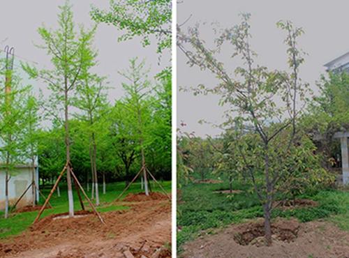 绿化中心近期完成了海棠、银杏等苗木的移植工作,共移植海棠15株,银杏25株。