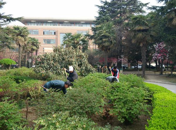 近日,绿化中心水保所职工班组及时清除该校区牡丹园内杂草。