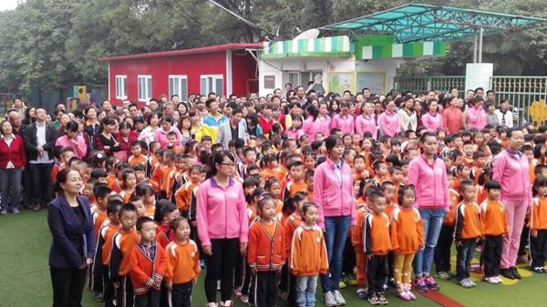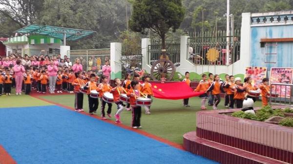 伴随着小鼓手们整齐有力的鼓点,神圣的国旗在小护旗手的护送下,庄严的出现在升旗台前。当国旗徐徐升起,在场的所有人神情肃穆、高唱国歌,小朋友稚嫩的脸庞流露出了对祖国妈妈无尽的爱意。