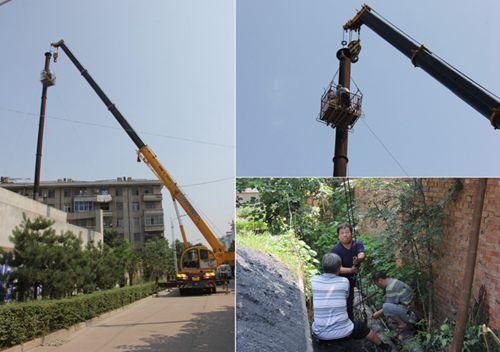 动力服务中心发现这一情况后,立即妥善处理,对烟筒周围进行围挡,并安排工作人员现场警戒。同时组织技术人员制定多套解决方案,经慎重考虑决定选择更换烟囱的3根拉线这一方案。7月8日上午,动力服务中心派出2名维修工,借助吊车、安全栏、安全带等保护设施,经过近3小时的紧张工作,成功完成了烟囱3根拉线的更换、地锚加固任务,彻底消除了安全隐患。