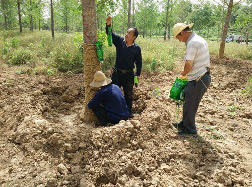 巩固绿化成果 苗木集体输液