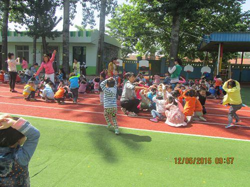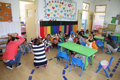 上午10点,幼儿园室内广播网响起了警报,全体老师立即各就各位,各班孩子临“危”不乱,在老师们的带领下,就近或蹲、或躺在课桌下或承重墙的墙根、墙角边,完成紧急避险演练。随着第二次的疏散信号响起,老师带着孩子们按照演练方案中的规定路线迅速有序地撤离活动室, 安全地疏散到操场安全区集结。整个演练过程历时2分30秒,教师和孩子们沉着镇定、紧张有序,没有发生任何意外碰伤事件。