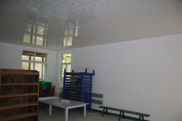 工程内容:新做120平方米夹芯彩钢瓦活动板房;新安1.2米*0.9米塑钢窗及防盗网7樘;新安2.1米*1.5米防盗门3樘,2.1米*0.9米防盗门1樘;新做配电箱及室内照明系统,新安600*600LED格栅灯6套、灭蝇灯3套、吊扇6台、换气扇1个;室内新做铝塑板吊顶,地面铺贴800*800毫米地砖地面;新做4米*1.5米玻璃橱窗1个;新做给水管并与原有管道碰口;新做混凝土柱基,建筑四周新做散水。