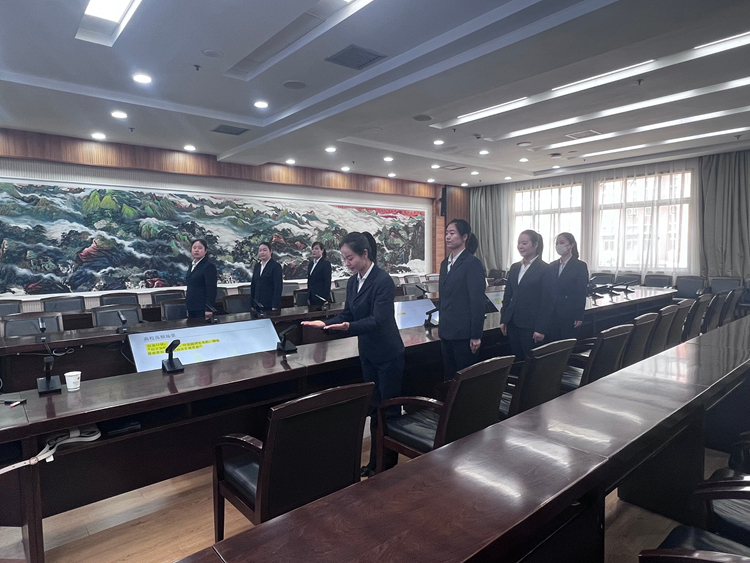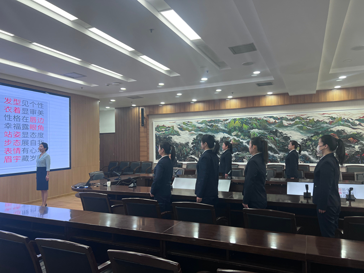 此次培训邀请了礼仪形象培训师刘欢老师,为会务服务班组8名会务服务人员开展了一场会务服务礼仪实操培训。