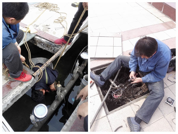 为做好2017年马拉松比赛我校赛区准备工作,4月6日早晨中心区服务中心全面调试喷泉,一切正常,而在下午喷泉开放10分钟后,中心广场中池喷泉突然停喷。面对突发情况,为不影响比赛期间喷泉的正常开放,中心区服务中心立即组织维修人员进行抢修,他们有人席地而座检查电缆地沟,有人深入地下一米深水池检查潜水泵。经过6个多小时的连续奋战,音乐喷泉才得以恢复正常。