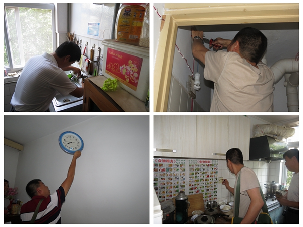 在苏老师家里慰问时,发现苏老师家卫生间墙壁上有个废弃灯头仍然带电,铜片裸露在外,存在触电风险,物业支部党员立即对其进行拆除,及时排除了安全隐患;发现客厅的时钟停止转动时,随即更换了新电池。虽然这是件小事,可对80岁高龄的苏老师来说,却解决了他生活中的一个大难题。