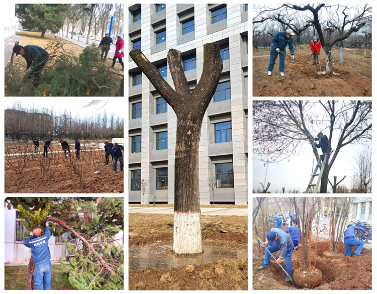 一是全面规划,精心开展绿化养护。校园环境中心对牡丹园进行了精细整地,为牡丹生长创造良好条件。有序开展校内树木移植工作,配合学校新建项目计划,重点将北校区锅炉房、东区超市,南校区彩叶林带等区域的树木,移植至北校区新建水建学院、南校区实验幼儿园南侧等区域。并针对枯枝、断枝进行统一修剪,消除潜在安全隐患。