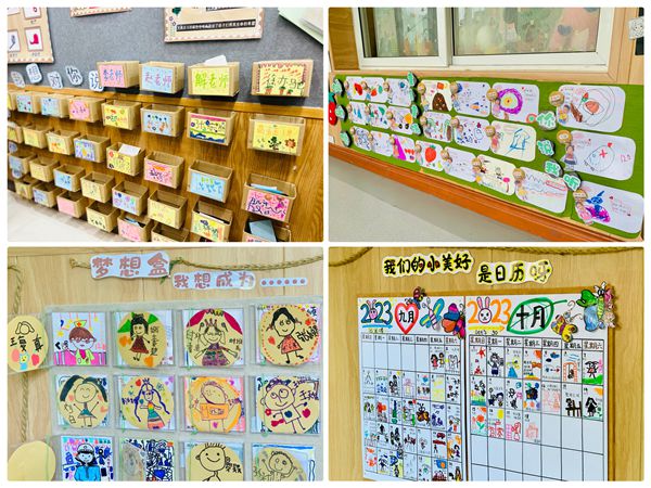 各班教师在开展区域活动的经验基础上,呈现出了更为明显的亮点。一是结合一班一品,紧跟时事和科技,如:实验园大一班以“一带一路”为主题的区域创设,培养幼儿的责任意识、国际视野,做国家的“小主人”;二是儿童立场愈发凸显,班级区域创设的平面设计图片化、幼儿作品的“倾听墙”,充分显示了教师对幼儿思维的尊重和保护;三是根据教育目标和各年龄段特点,精心设计,巧妙布局,投入了丰富的低结构、半成品的、操作性强的材料,引发幼儿的主动操作、探索和交往;四是教师观念明显转变,在区域活动中更加注重多元化评价,关注到了幼儿自评和互评,让孩子的声音能够“看”得见。
