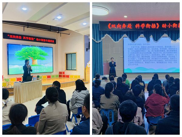 4月21日下午,幼教中心组织两园开展了以“双向奔赴,科学衔接”为主题的“幼小衔接”专题讲座,活动邀请杨凌高新小学资深教师崔晶、桂佩分别进行主讲。