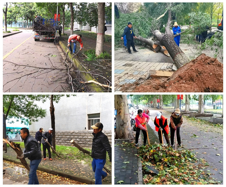 9月19日,接上级防汛指挥通知,未来数日,关中局地有持续性暴雨天气,校园环境中心积极响应,绿化班组对各自负责区域绿地内的病树、危树等进行全面排查,发现枯枝、病枝及时修剪,防止断枝掉落;保洁班组冒雨坚守岗位,奔走于法桐路、栾树路、银杏路等主干道,清扫路面淤泥,清理雨篦子处积水杂物,防止下水口堵塞,保证道路畅通和排水无阻。