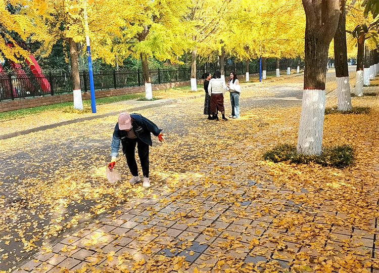 秋韵过后,校园环境中心立即采取有效措施,做好落叶清理工作。