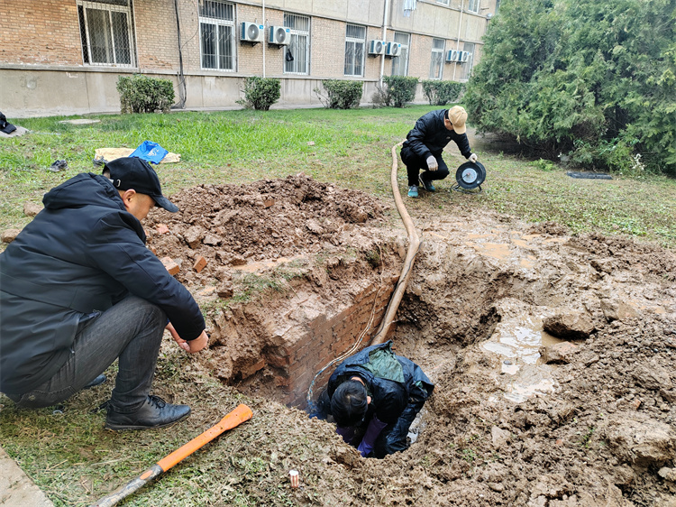 12月26日,能源管理中心接报南校区2#学生公寓楼北侧绿化地面向上涌水,立即组织水电班火速赶往现场。由于漏点位于绿化带中,增加了抢修的难度,但是抢修人员丝毫没有畏惧,为尽快找到漏点,他们争分夺秒,迎难而上。