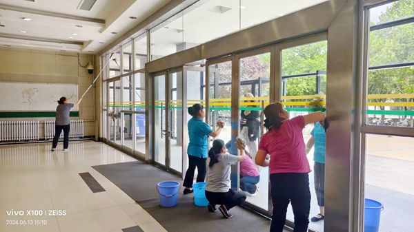 二是组织人员对各项服务保障内容进行落实和细化,擦洗教学楼墙体玻璃,清擦教室桌椅、门窗,擦洗热水器,野广告等,及时补充卫生纸,全力营造一个干净、整齐、安全、舒适的考试环境。