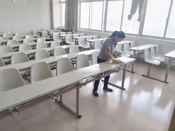 四是对教学楼教室活动桌椅进行核对摆放,确保教室桌椅整齐划一。