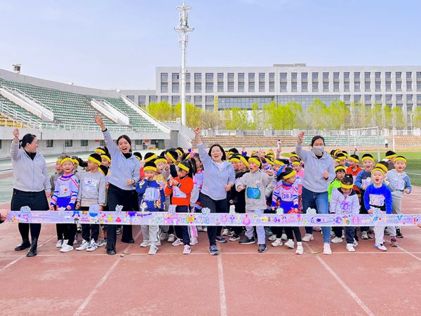 随着发令口哨地吹响,小小运动员们冲出起点线,沿着跑道一路向前,教师组织领跑团队为孩子们一路保驾护航。活动中,孩子们相互支持,相互鼓励,不言弃不放弃,通过自己的努力全部坚持到达了终点。
