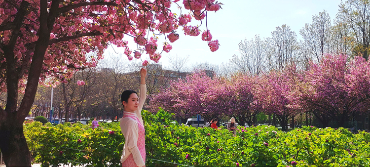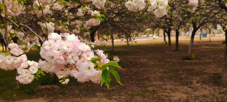 校园晚樱正盛