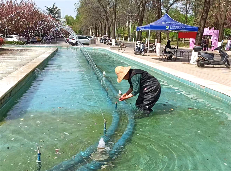 一是清洗雕塑、开放喷泉。保洁班组利用冲洗车对四季广场、小西湖、银杏路等区域的景观小品、设施、地面、喷泉池进行冲洗,湖池管理员对该区域以及农科楼东侧的喷泉进行调试、注水备用。二是加强管护赛道沿途绿化景观。绿化班组重点对东大门入口处、以及沿途绿篱、草坪进行修剪;对沿途景观树木的干枯枝进行清理;保洁班组拔除人行道树坑、地面石缝内的杂草,确保沿线绿化整洁、美观。三是持续做好环境卫生保洁。“全天巡视、发现即清”,安排专人负责赛道卫生保洁。