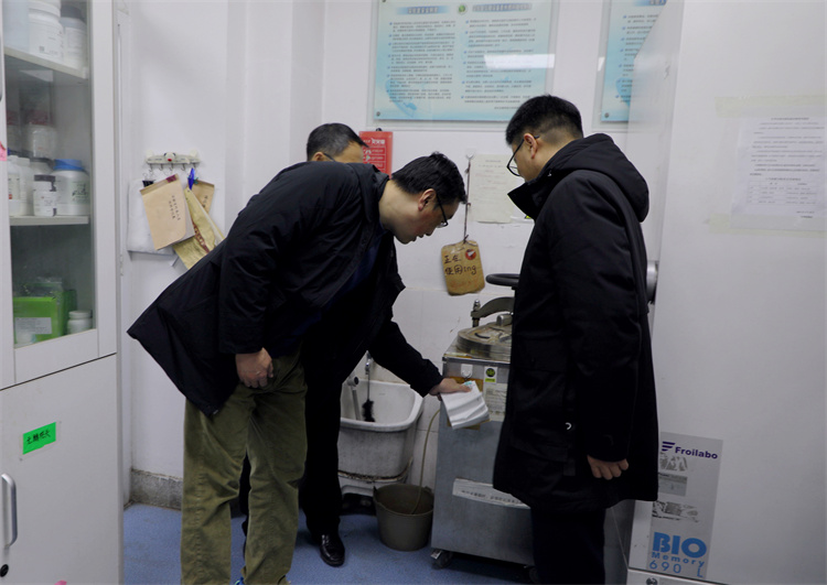检查过程,郑英宁与正在做实验的学生亲切交谈,详细询问了学生寒假学习、实验安排,叮嘱务必做好实验室安全防范工作,严格落实人走断电断水措施。同时他强调,全面保障校园安全是学校各项工作的基础,各学院要进一步强化组织领导,狠抓责任落实,强化底线思维,着力防范隐患,坚持源头严防、风险严控,任务到位、责任到人,做到真落实、见真效,切实维护师生人身财产安全和校园安全稳定。