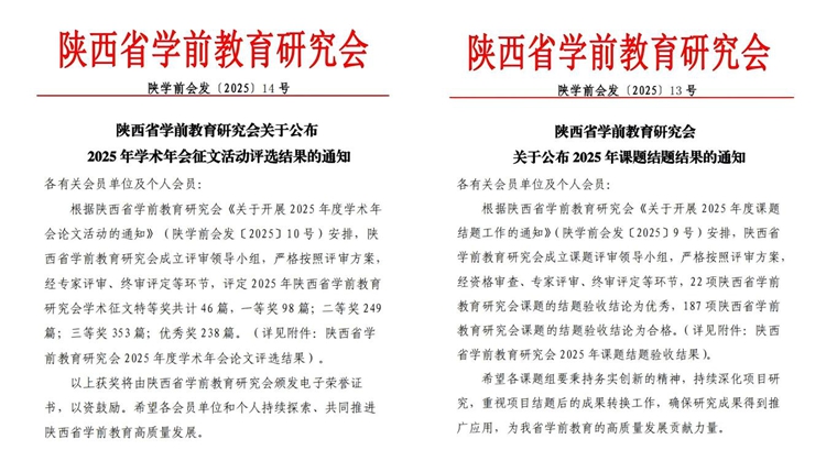 在课题研究方面,我园申报的两项省级课题均顺利通过结题评审,其中一项获评“优秀”课题。同时,8位教师在研究会举办的“学术年会征文活动”评选中获奖,涵盖教学论文、教育叙事等类别。