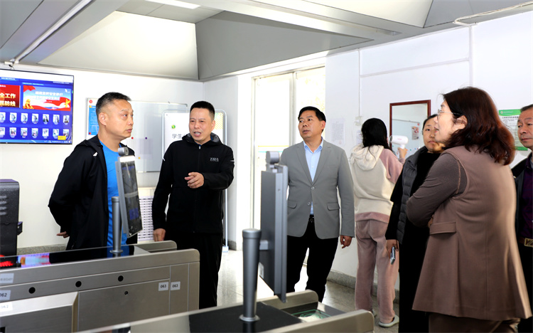 许伟一行实地调研了学生公寓、学生餐厅等处,双方就物业、餐饮、学生公寓、能源管理、校园绿化建设等方面进行深入交流学习。