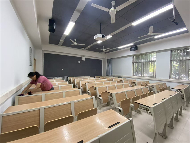 北校区八号教学楼教室桌椅擦拭