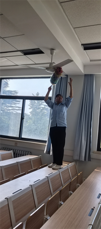 南校区一号教学楼清理教室电风扇灰尘