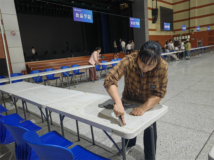北校区绣山活动中心清理桌子污渍
