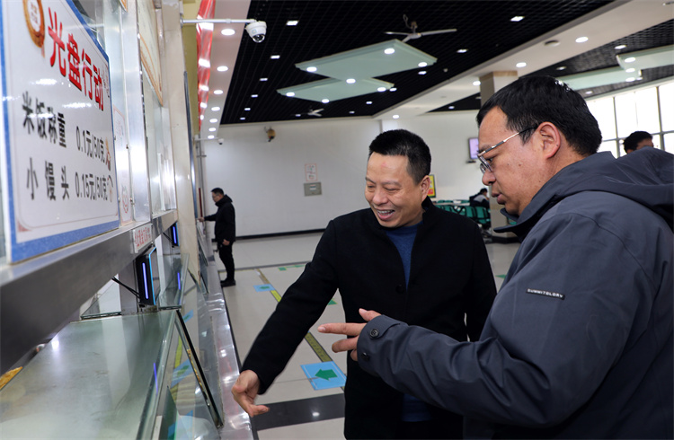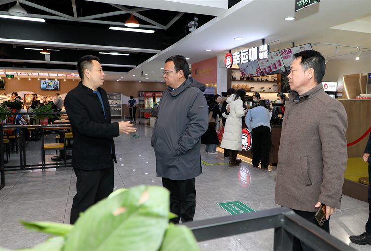 随后,后勤党委副书记卿明华等相关负责人陪同周振鑫一行实地调研走访了校园绿化建设、快递服务中心、学生浴室、学生餐厅的建设与 运营。走访过程就引进社会化服务、监督管理、学生体验感和个性化需求等等方面进行了充分交流。