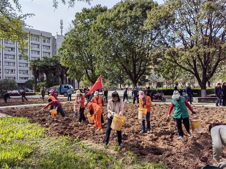 春风扶枝吐新叶,正是绿化好时节。4月3日下午,校园环境中心党支部联合行政党支部、能源党支部、学生社区中心党支部,在南校区林苑广场联合开展“劳动最美·劳动最光荣”主题党日活动,在广场两侧绿地种植美人蕉,30余名党员职工参加活动,用行动为这春色画卷增添亮色。