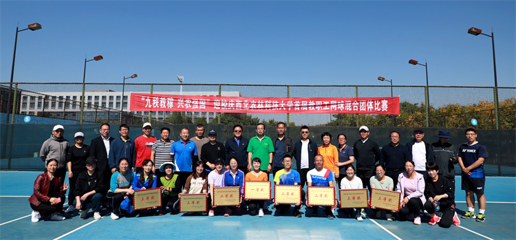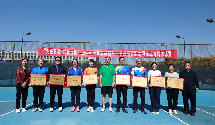 杏黄与运动蓝两相宜。一次次有力的挥拍,一声声清脆的回球,伴随着一阵阵场边的欢呼,10月15日上午,一场精彩纷呈的“九秩教稼 兴农强国”迎校庆西北农林科技大学首届教职工网球混合团体赛在北校区网球场圆满落幕。全校19个部门工会、160余名运动员参赛,经过2天52场激烈的角逐,后勤部门工会代表队获得第四名二等奖的好成绩。