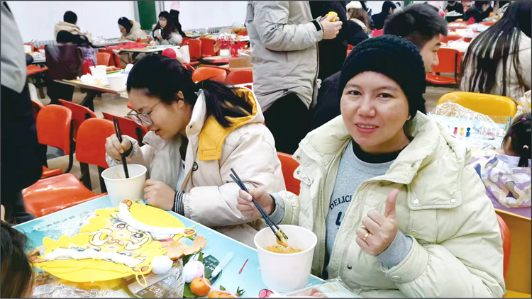 活动繁忙的工作之余,同学们更多的是体会到了家庭的温馨和快乐,感受传统节日的氛围,培养了动手能力和团队协作精神。在饮食服务中心大师傅的指导下,同学们自由组合,一展身手,亲手包出了各式各样的饺子,有的皮薄馅大,有的皮厚馅少,有的长形,有的圆形,但每一位同学都用自己的辛勤劳动成果诠释了包饺子带来的喜悦。食堂大厅里欢声笑语不断,同学们围坐在一起,一边品尝这些充满爱和心意的饺子,感受这个特别的日子所带来的温暖和幸福。一边交流着包饺子的心得体会,互相激发对家乡文化和美食的热爱。