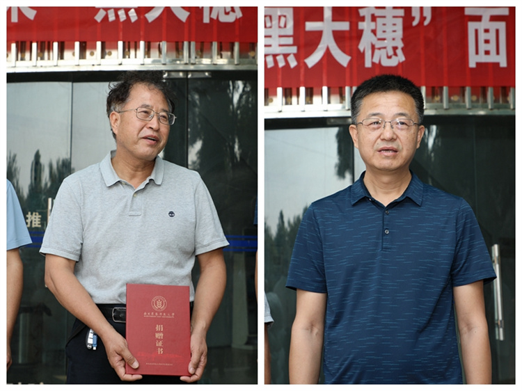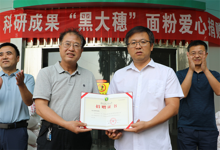 9月18日,在北校主食加工间门口,张正茂教授带领团队向学校捐赠了4000余斤彩色小麦“西黑88”面粉。学校教育发展基金会向张正茂教授颁发了捐赠证书,张正茂教授向大家介绍了“西黑88”面粉的研发过程和营养结构以及制作工艺特性,同时深情回顾了在西农求学和入职学校搞研发的时光岁月,言辞间饱含对学校深切情谊,他希望通过食堂这个阵地与师生共享科研成果。后勤管理服务处党委书记、处长王德连代表学校及师生对张正茂教授团队表达了由衷的敬意与感谢,他指出张正茂教授“情系麦田,育种育人”的精神品质值得一代代西农人学习和传承。捐赠仪式当天正值中国九一八事变纪念日,现场参加捐赠仪式的全体人员集体默哀,深切缅怀。