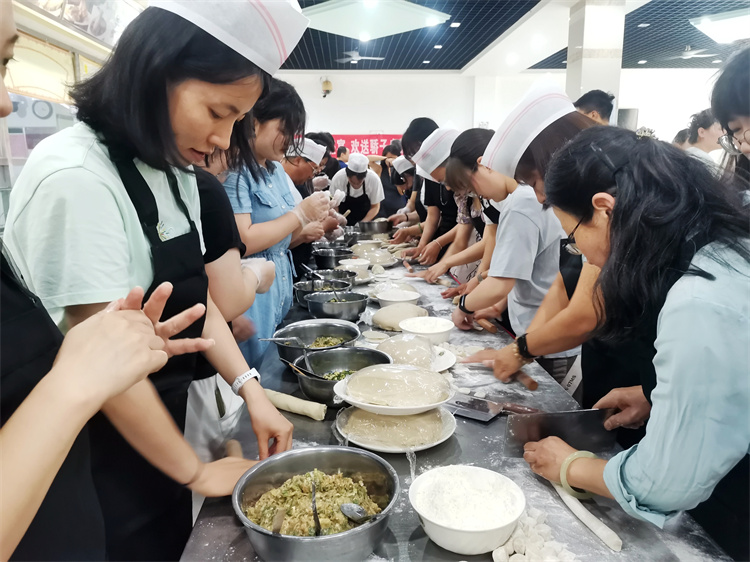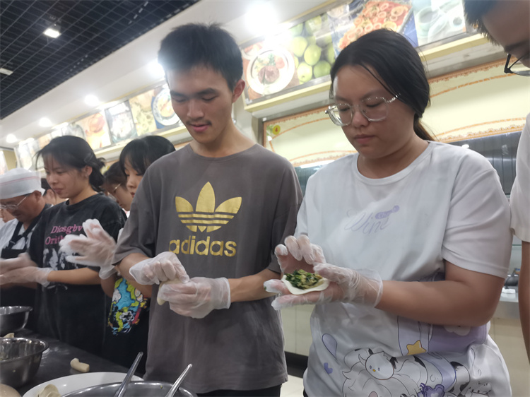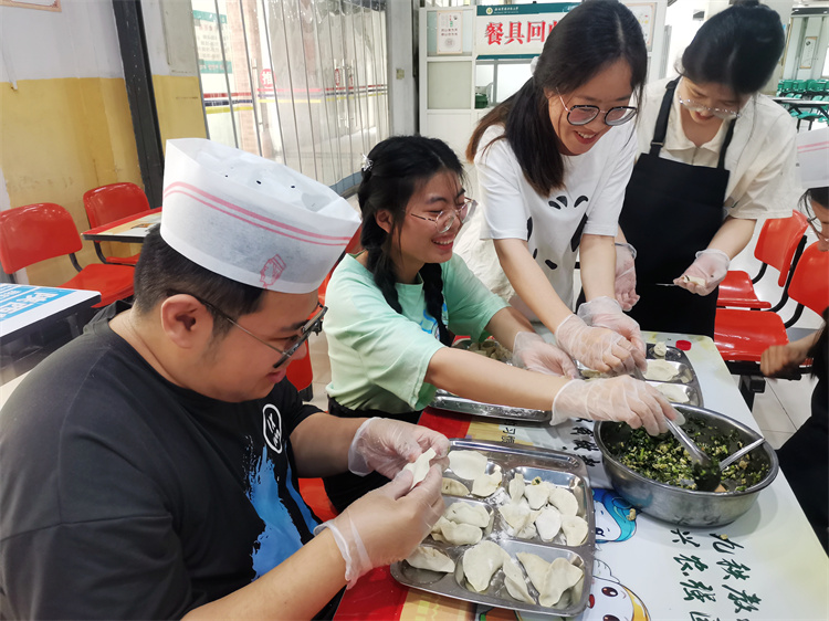 活动当天,学生们围着长桌,认真学习包饺子技巧,在老师的指导下,用双手将馅料巧妙地包裹成一个个充满情感的饺子,每一个饺子都承载着对过去的怀念与感激,对未来的憧憬与期待,以及对师长同窗的深深眷恋。在包饺子的过程中,师生们共同回忆着在校园中度过的美好时光,分享着彼此的欢笑与成长。老师们的悉心教导、同学们的欢声笑语,以及那些共同经历的难忘瞬间,都化作了珍贵的回忆,深深印刻在每个人的心中。